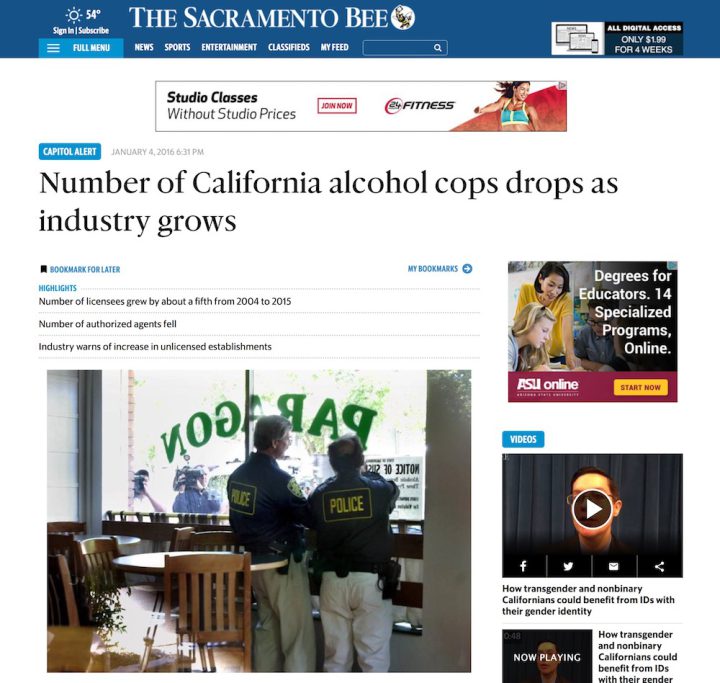 Excerpt – “From restaurants and bars to craft breweries and mini-marts, Californians had plenty of ways to buy and drink alcohol during the just-concluded holiday season. But as consumer options have expanded, the number of sworn agents who enforce state liquor laws is lower than it was a decade ago. Agents, charged with preventing underage […]