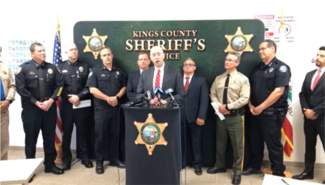 KINGS COUNTY – On June 19, 2019, local, state and federal law enforcement officers announced the conclusion of Operation Red Reaper, a 10-month investigation into violence and drug trafficking by gang members in Kings and Tulare Counties. The operation resulted in nearly 100 arrests, the seizure of up to 74 firearms and more than 36 pounds of drugs including methamphetamine. The operation focused on the violent Norteño street gang and the Nuestra Familia prison gang.
