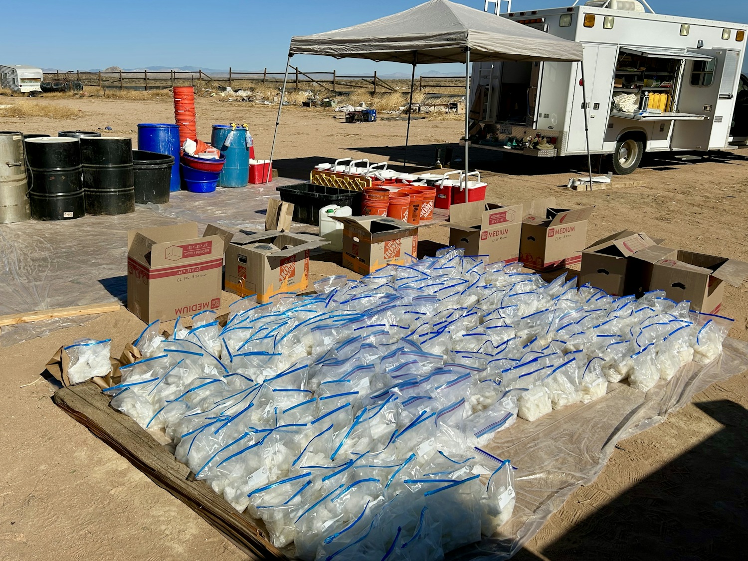 NORTH EDWARDS – On September 3, 2025, the Kern County Sheriff’s Office, Kern County High Intensity Drug Trafficking Area Task Force (KC-HIDTA), the LAPD Hollenbeck Narcotics Task Force, the Kern County District Attorney’s Office Investigations Unit, and wardens from the California Department of Fish and Wildlife (CDFW) concluded a narcotics investigation with the execution of search warrant at a rural property in the 19500 blk of Desert View, North Edwards.