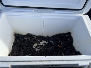 The officer contacted the individuals at the top of the trail and requested to inspect the bag. Upon inspection, the officer immediately observed an extremely large number of striped shore crabs inside. After counting, the total came to 351 crabs, exceeding the legal limit by 281. Neither individual possessed a valid fishing license.