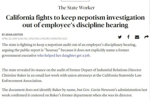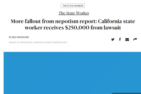 In the News: More fallout from nepotism report: California state worker receives $250,000 from lawsuit